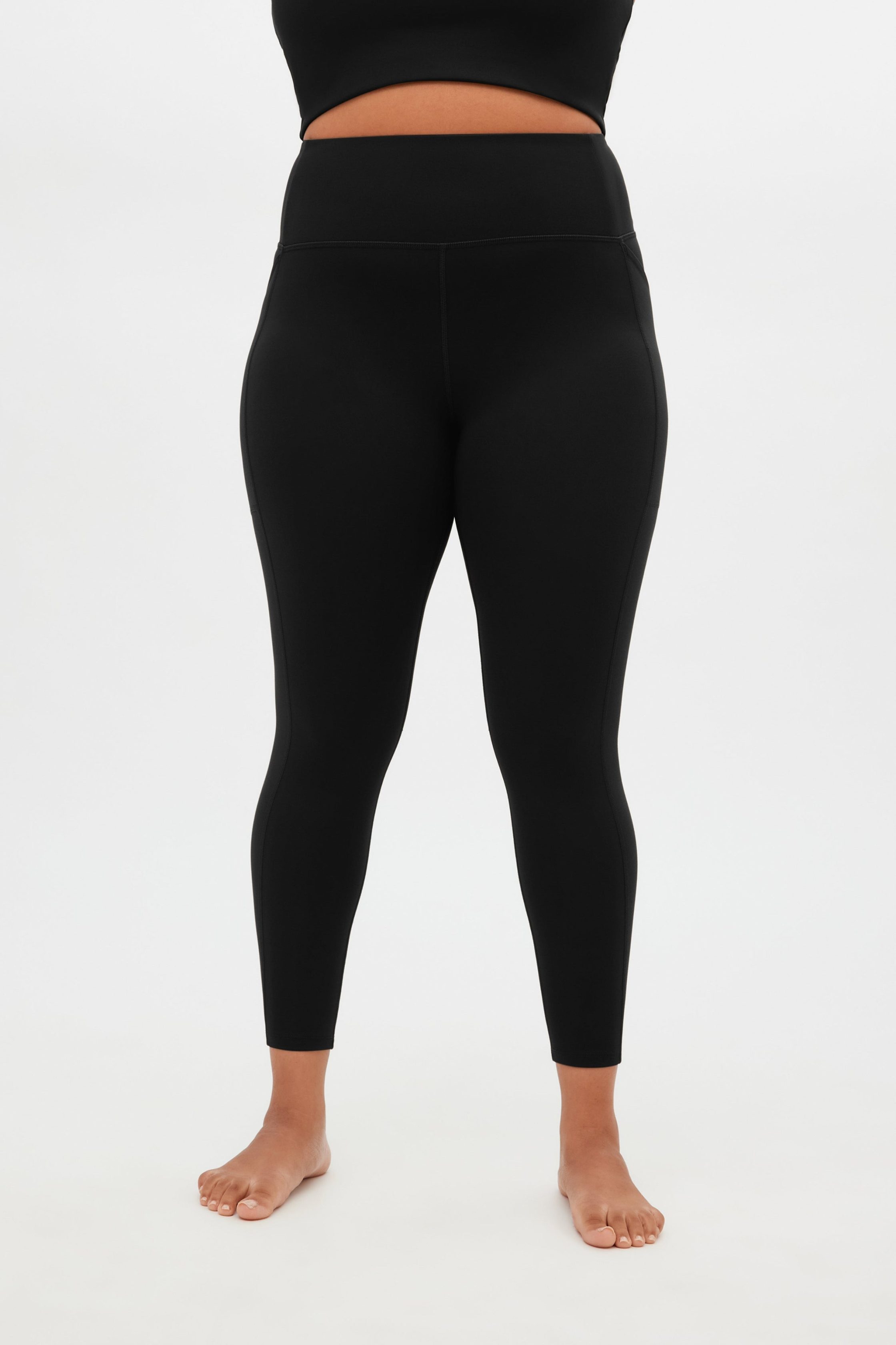 Compressive, squat-proof, ultra-high rise leggings with dual side pockets.