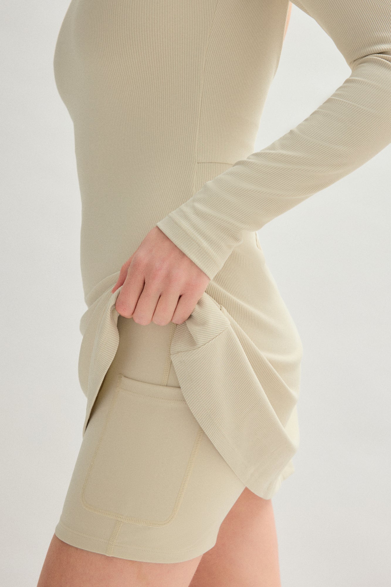 Like your favorite unitard and little black dress had a baby—and made it sweat-friendly. Complete with long sleeves, a built-in romper, and the ultra-soft feel of FLOAT.